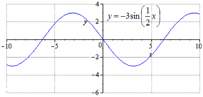 y = - 3 sin 1 2 x - 3 2 - 2 = - 3 sin 1 2 (x - 3) - 2